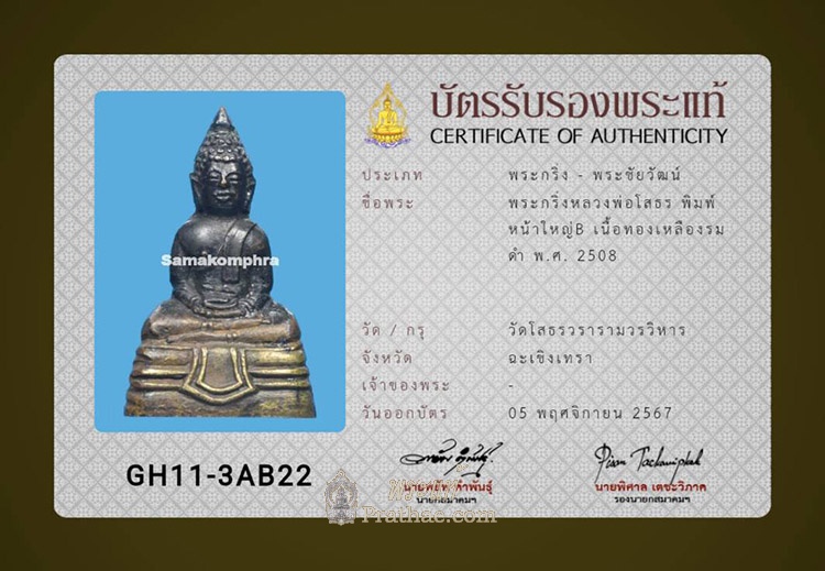 พระกริ่งหลวงพ่อโสธรปี2508บล็อกหน้าใหญ่B ราคา : 6,500 .-