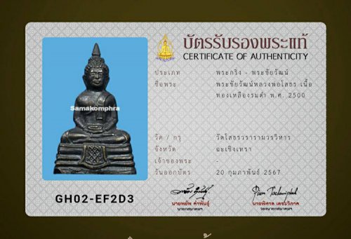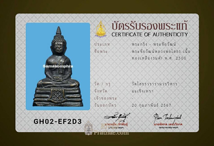 พระชัยวัฒน์หลวงพ่อโสธรปี2500 ราคา : 26,000 .-